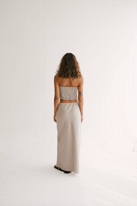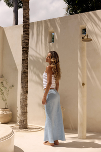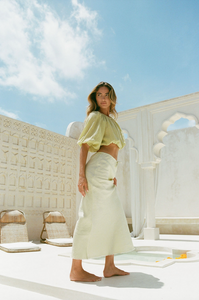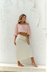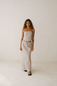 A feminine slip silhouette crafted from 100% French Linen. Designed for effortless dressing, the Adena Skirt offers a high-rise fit, adjustable drawstring waistband and raw-edged full length hem. Cut on the bias to create fluid curves that accent the body. We love to style Adena with the Amber Top or Zamia Top.